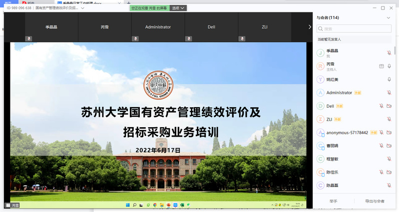 本次培训是细化落实学校“2022年度工作要点”、扎实推进“书记项目”,加强管理部门主动服务意识,推进能力和作风双提升的重要举措。培训主要围绕国有资产管理绩效评价工作以及采购业务展开。